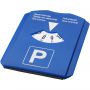Parkolótárcsa jégkaparóval, gumitörlővel, érmetartóval és a gumi futófelületét ellenőrző mérővel. A lemez hátulján nagy fehér felület a logóknak. A lemezen az Érkezési idő szövegezés hollandul, angolul, franciául, németül és olaszul is megjelenik. A szabályok helytől függően változhatnak.