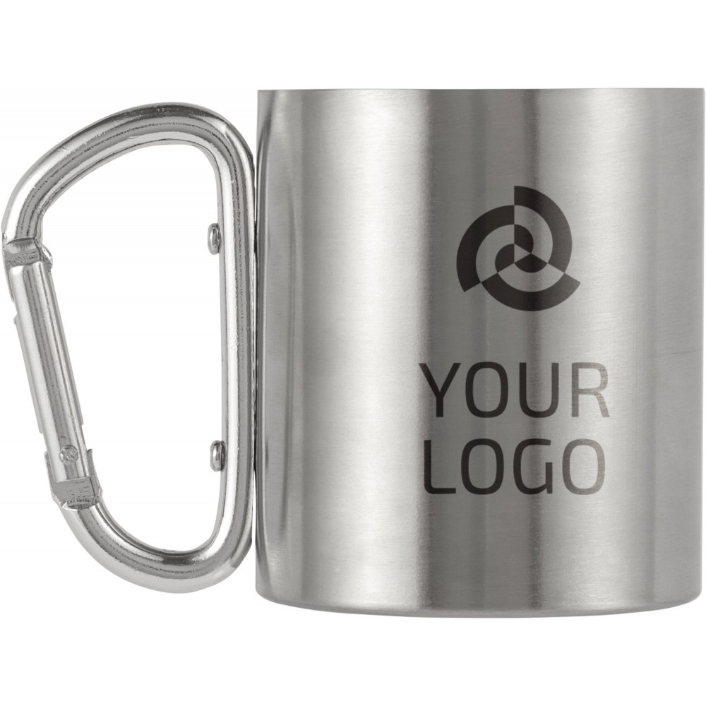 Duplafalú utazóbögre karabinerrel, 185 ml, ezüst