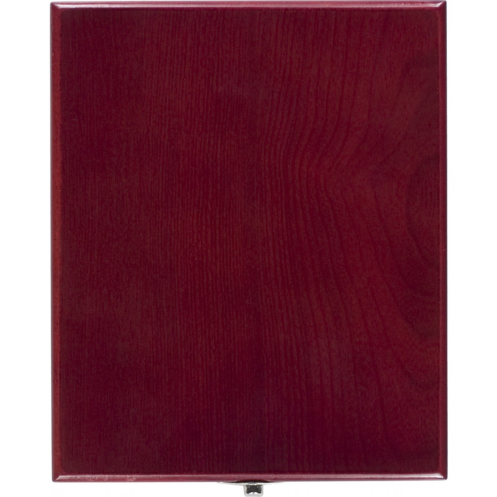 Boroskészlet fa díszdobozban. Üvegdugó, cseppfogó, borhőmérő, pincérbicska.