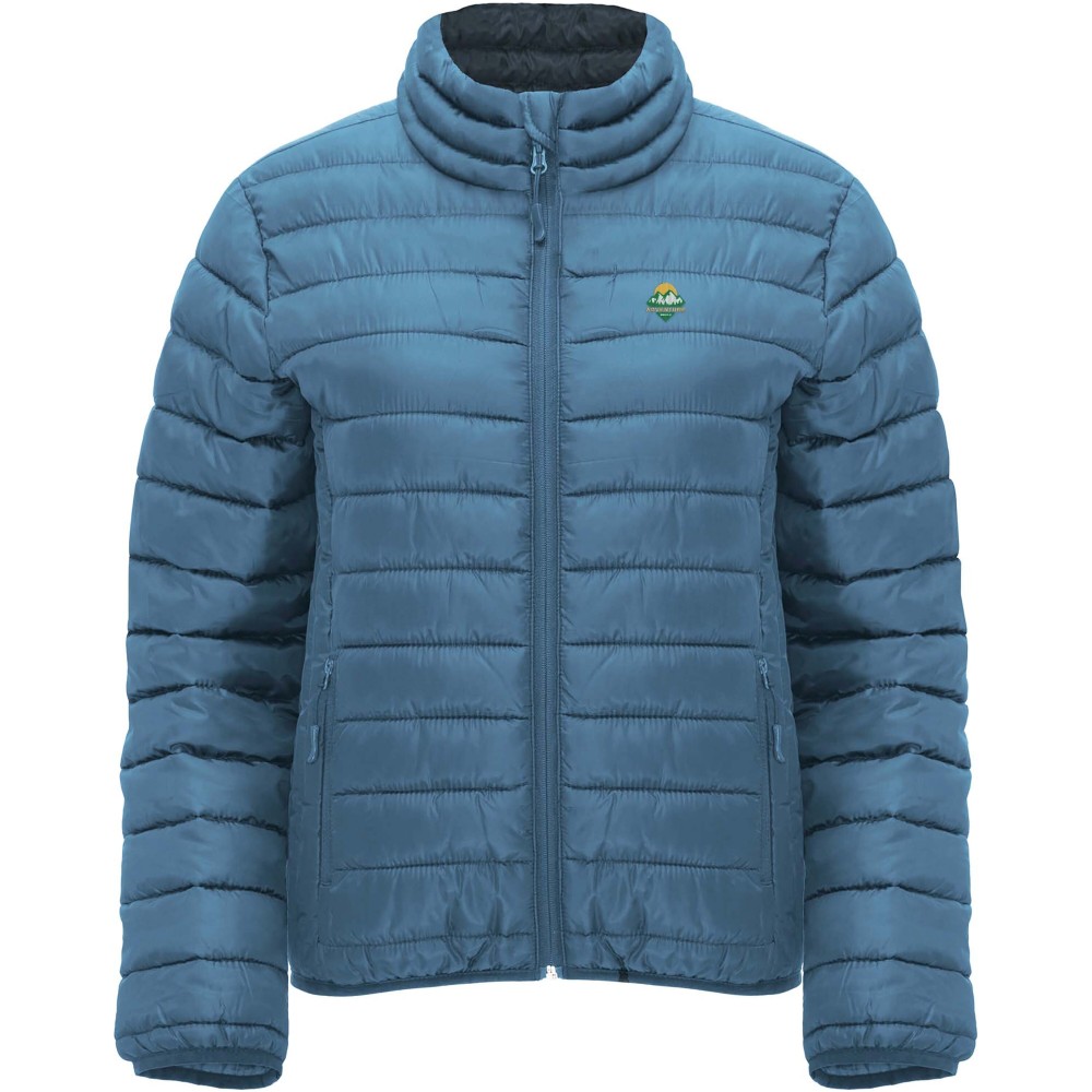 Női, karcsúsított, steppelt dzseki tollszerű tapintású töltettel, tasakkal. Fordított cipzárak, színben illeszkedő állvédővel és cipzárral. Két cipzáras elülső zseb. Gumis szegély a galléron, a kézelőn és az aljon. Kontrasztos színű bélés. Könnyű és összehajtható ruhadarab. Vízálló. Szélálló. 100% poliészter, 290 g/m2. Bélés és töltet: 100% poliészter.