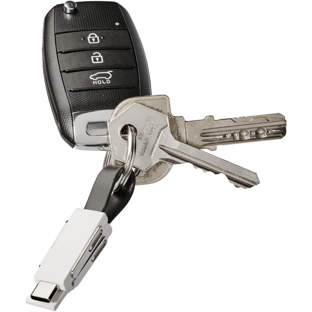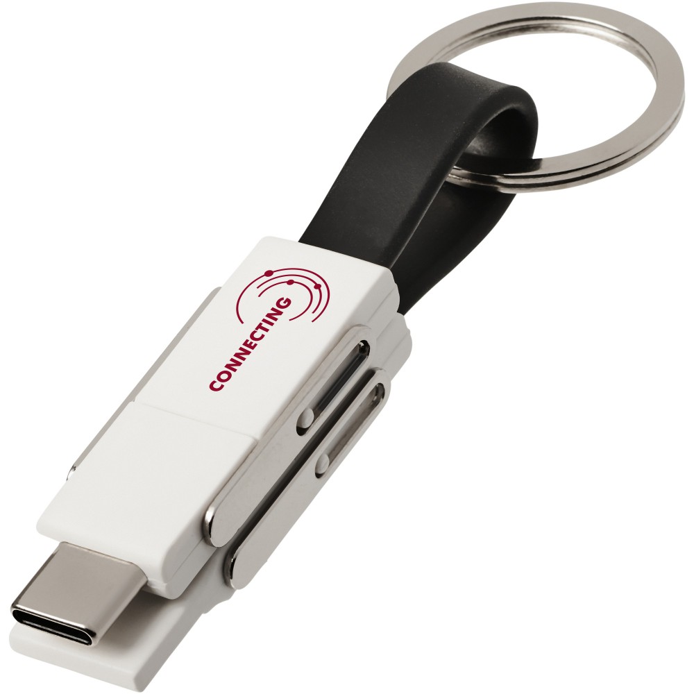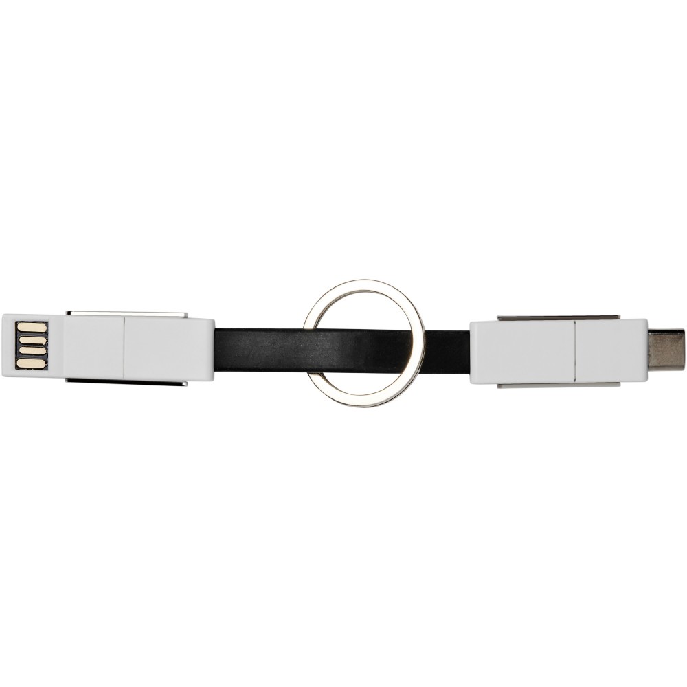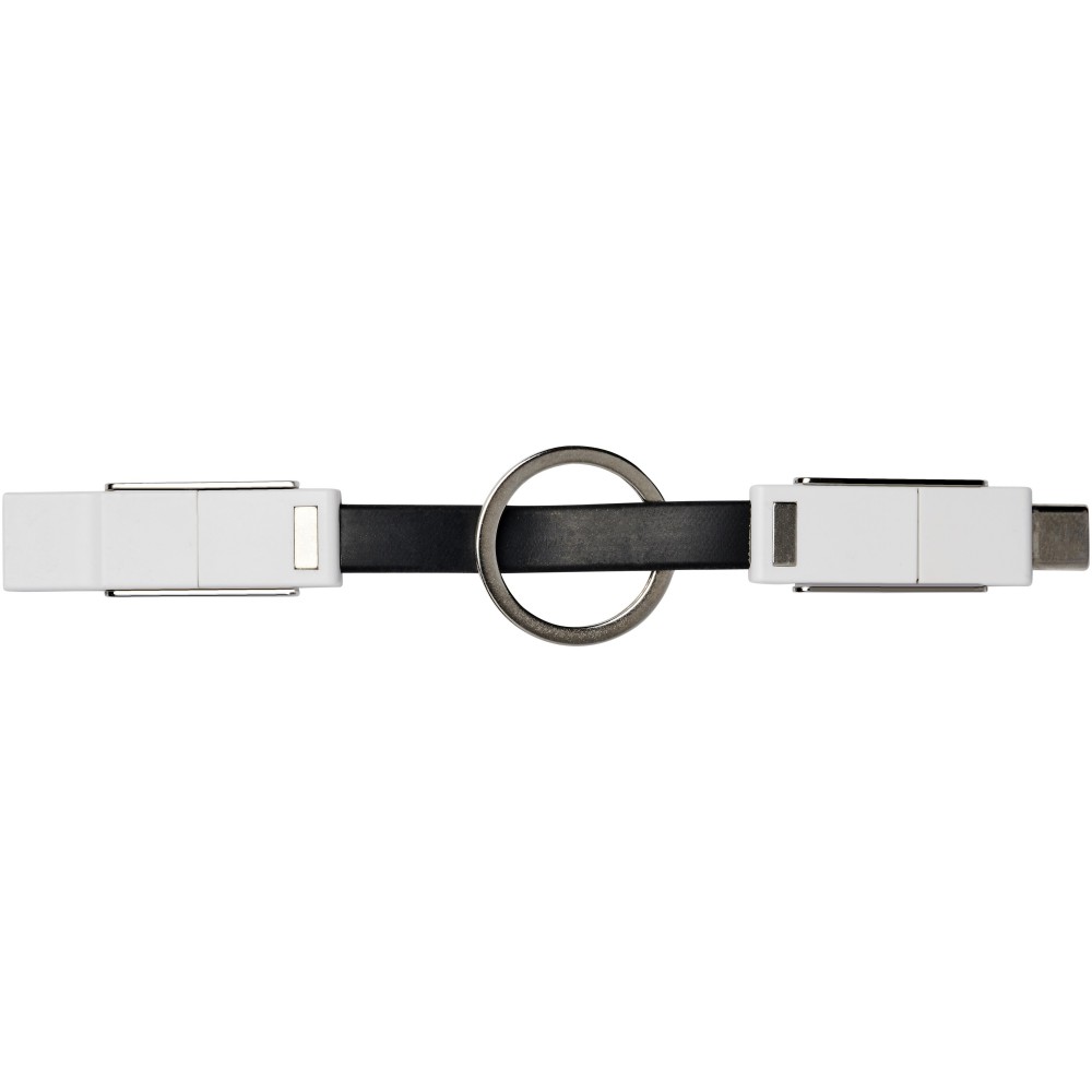 4in1 csatlakozók kulcstartóval, mágnessel. Lefed minden csatlakozási lehetőséget: USB type A, Type-C, 2-in-1 csatlakozó iOS és Android eszközökhöz. Töltésre és adatátvitelre is alkalmas. ABS műanyag.