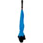 Innovatív, kiforduló szerkezetű, duplafalú esernyő, üvegszálas vázzal és műanyag fogóval. Tépőzáras.