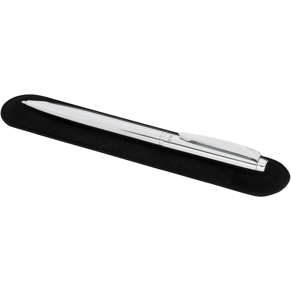 Kifinomult tervezésű golyóstoll krómozott vagy színes alsó résszel és fényes krómozott részletekkel. Prémium minőségű fekete tollbetéttel. Csomagolása Luxe ajándékdoboz.Fém.