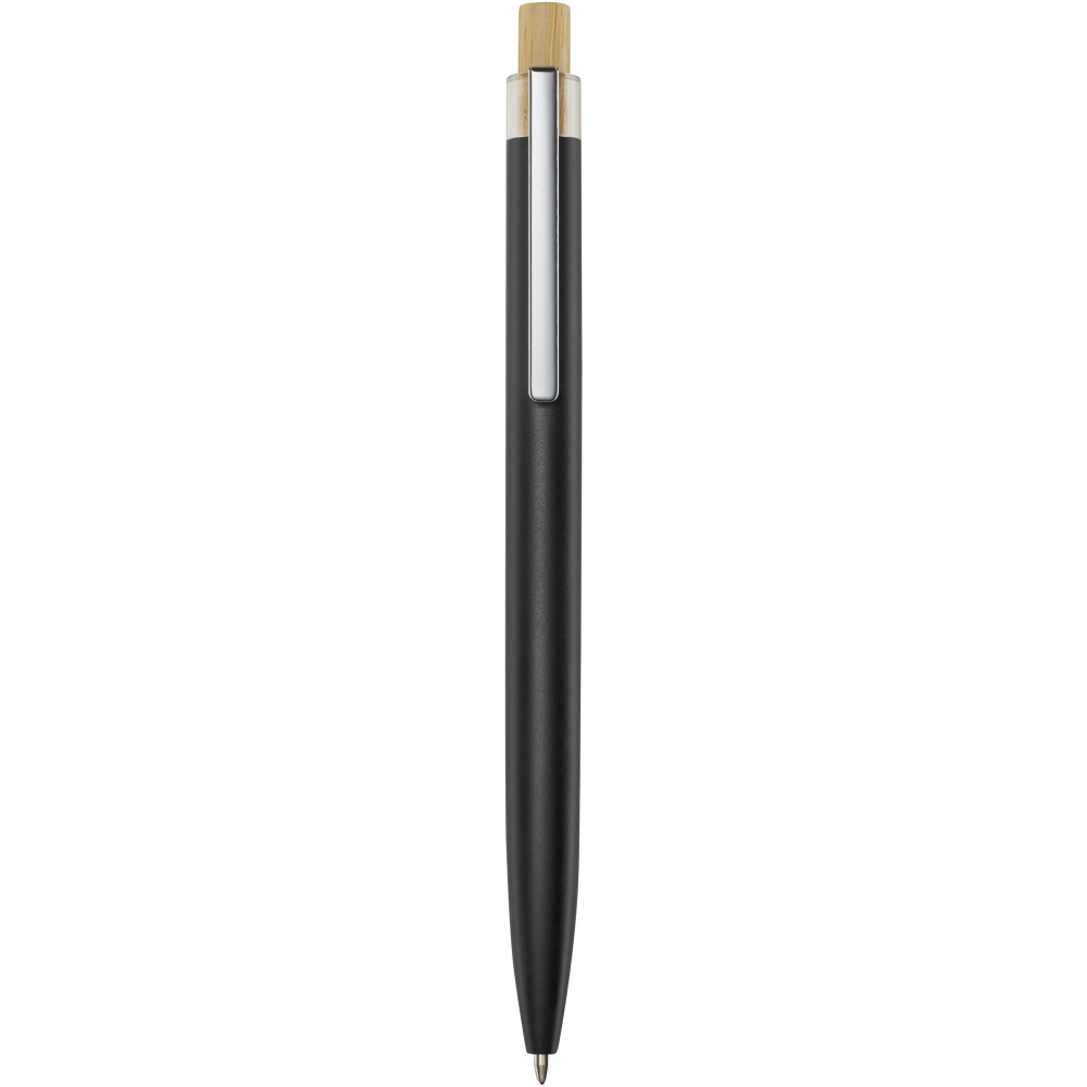A Nooshin golyóstoll újrahasznosított alumíniumból készül, ami kevesebb energiát igényel, mint az alumínium nyersanyagból történő előállítása. Emellett csökkenti a hulladéklerakókba kerülő hulladék mennyiségét és hozzájárul a természeti erőforrások megőrzéséhez, amelynek célja az üvegházhatású gázok kibocsátásának csökkentése. A nyomógomb bambuszból készült. Tollbetét színe: fekete. Íráshossz: 800 méter. Tollhegy mérete: 1,00 mm.