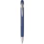 Újrahasznosított alumínium golyóstoll gumírozott felülettel. Bordázott részletekkel a markolaton és a tetején, krómozott műanyag heggyel és fém klipsszel ellátott nyomógombbal. Lézergravírozott újrahasznosított logóval. Kék tintával.