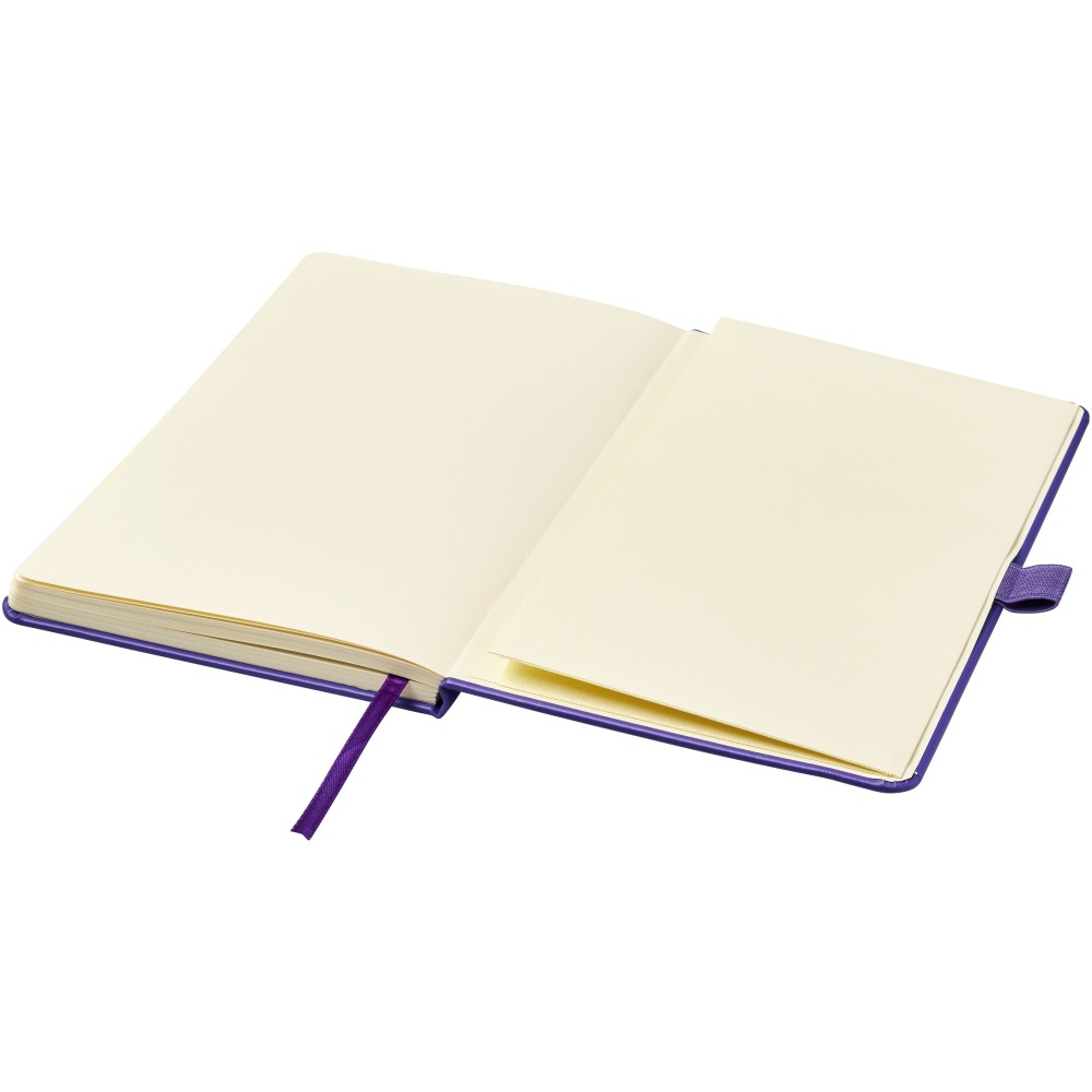 Műbőr A5-ös (14,2 cm x 21,4 cm) jegyzetfüzet gumiszalaggal, szalagjelölővel, tollhurokkal és harmonika hátsó zsebbel. 96 db vonalas krémszínű lapot tartalmaz (80 g/m2).
