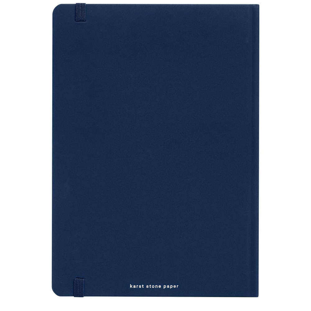 Karst A5 keményfedeles füzet. Az oldalak sima textúrája és a lapos kötészet bőséges kényelmet és íróteret biztosít jegyzetei számára. Elasztikus pánt, 144 vízálló, szakadásálló vonalas lap, kibővíthető hátsó zseb a tároláshoz, valamint könyvjelző és lekerekített sarkok.