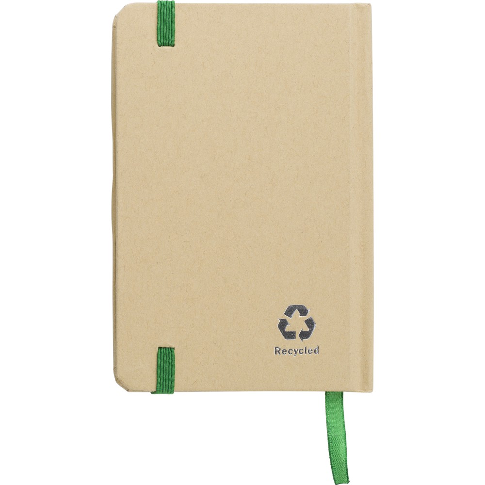 Újrahasznosított kraft papírból készült A6-os jegyzetfüzet 160 vonalas lappal, gumis pánttal és szalag könyvjelzővel.