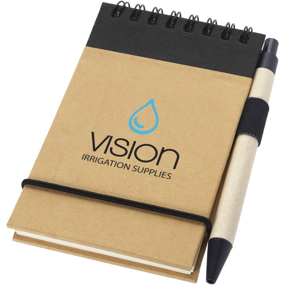 Ez az újrahasznosított jegyzetblokk 40 db A7-es méretű vonalas lapot tartalmaz újrahasznosított papírból, és egy hozzáillő színű tollat. A tollak külön csomagolva.