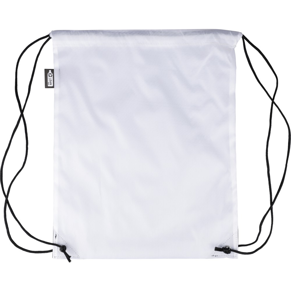 Tornazsák 210D poliészter anyagból, fekete PU sarokerősítéssel az elején, és belső varrással. Fekete nylon húzózsinórral, egy rekesszel. Űrtartalom: 5 liter, teherbíró képesség: 7 kg. rPET címkét tartalmaz.