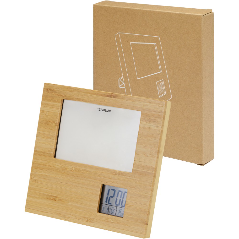 Sasa bambusz fotókeret és időjárás állomás, natúr