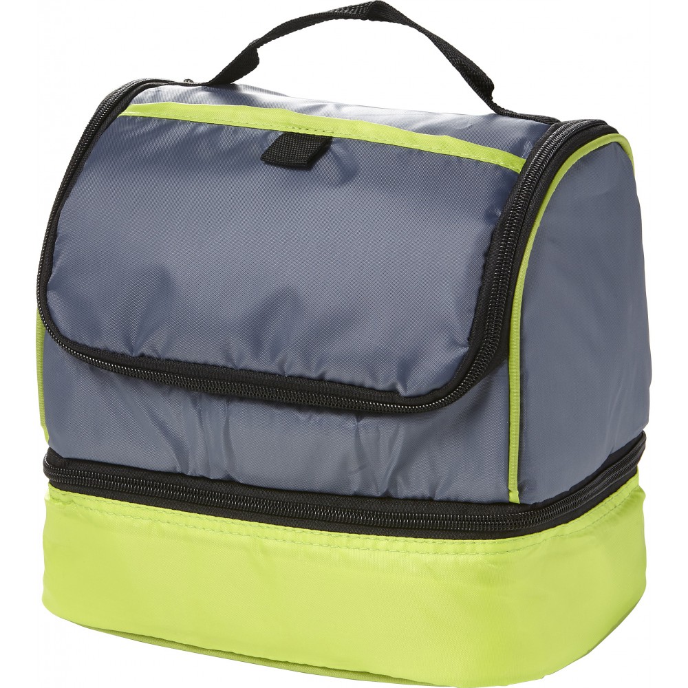 Hűtőtáska az alján külön hűtőrésszel, valamint hálós oldalzsebbel. 210D poliészter.
