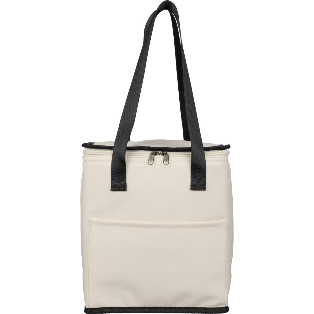 Újrahasznosított PU anyagból készült hűtőtáska 9 literes űrtartalommal, 210D újrahasznosított poliészter béléssel. 2,5 × 66 cm méretű hosszú fülekkel és elülső tárolózsebbel rendelkezik. A belső címkén újrahasznosított alapanyagra utaló logó található.