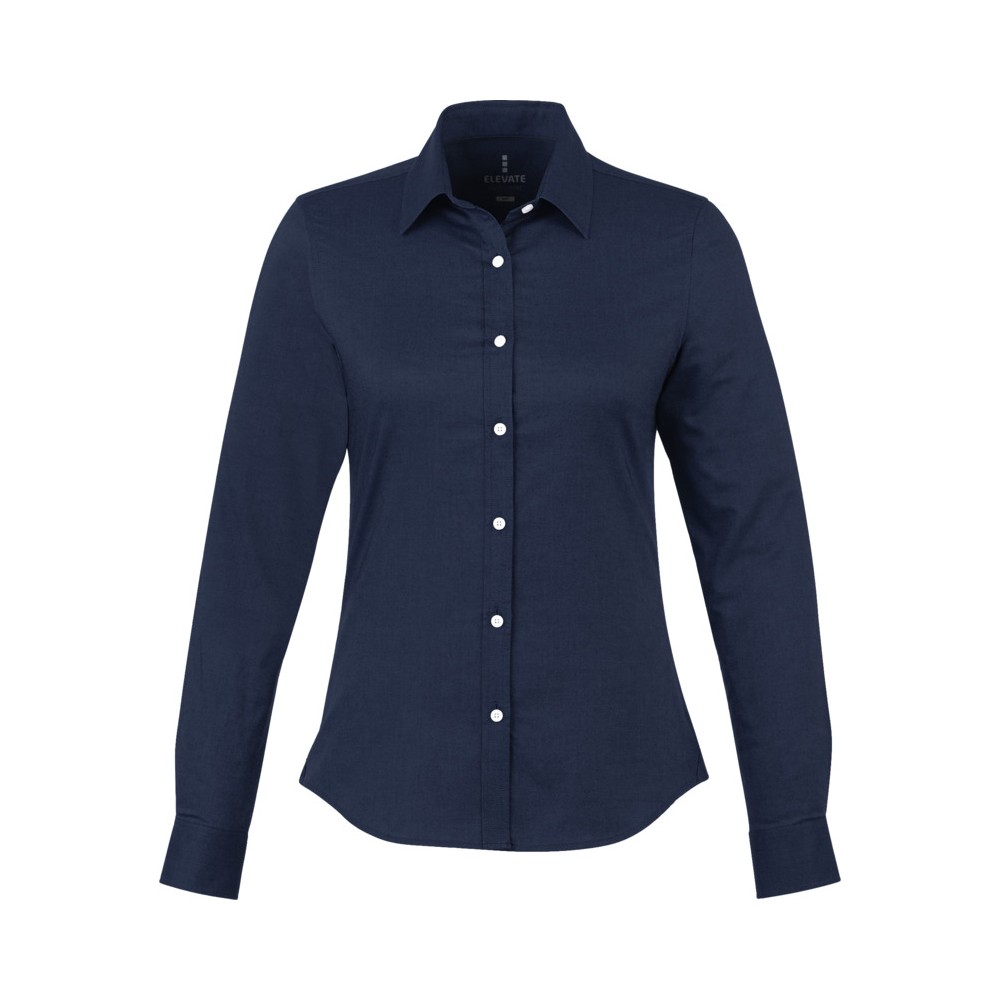 Normál szabásvonal. Elevate logóval gravírozott, fehér gombok. Alulról a második gomblyuk narancssárga öltésekkel dekorálva. Két gombos, állítható kézelő gombolás. Tónusos logónyomat hátul. Szatén szegély a nyakvonalban. Legombolható gallér (férfi). 100% pamut Oxford anyag.