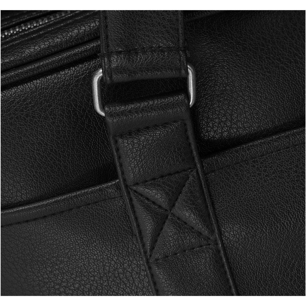 Oxford bőröndre húzható laptoptáska cipzáras főrekesszel, amely illeszkedik a legtöbb 15.6 laptophoz. Belső rendező panel tabletek és egyéb eszközök tárolására. Könnyen hozzáférhető elülső tépőzáras rekesz, leszerelhető, állítható vállpánt, hordozófülek és hátsó kengyel, amelynek segítségével ráilleszthető a legtöbb bőröndszállító kocsi fogantyújára. Antik bronz fémrészek. Műbőr.