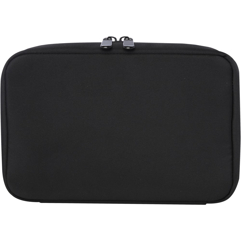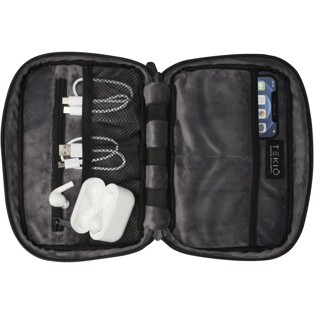 A Rise szervezőtáska sokoldalú és hibrid megoldás a műszaki cikkek rendszerezésére. Ez a tartós 900D GRS újrahasznosított poliészterből és GRS újrahasznosított velúr/bársony béléssel készült keményfedelű tok két lapos tokkal, hálós zsebekkel, alul elasztikus pántokkal a kábelek számára, valamint egy cipzáras zsebbel rendelkezik a további kiegészítők számára. Az összes zseb optimális szervezést biztosít, a kemény héj megvédi az összes értékes kütyüt.