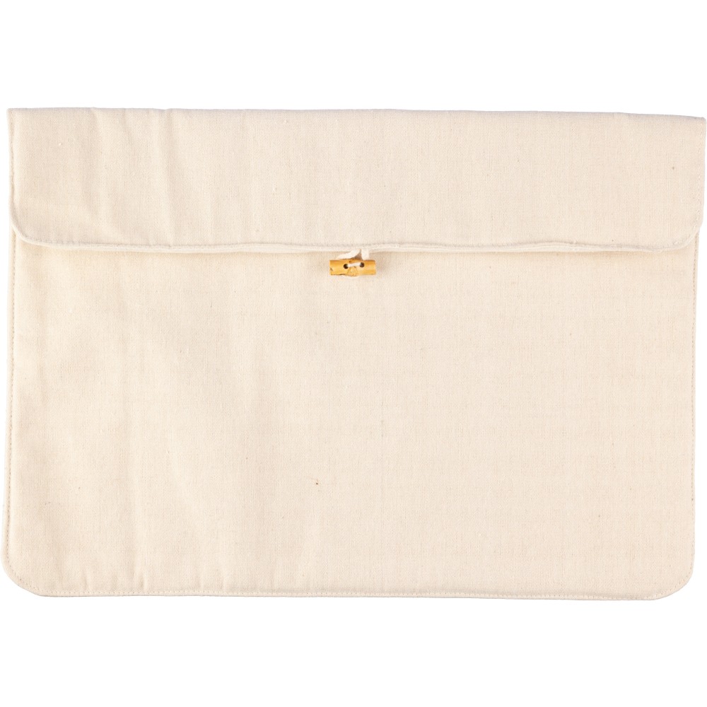 Laptoptok pamut béléssel, bambuszból készült zárógombbal. 15 incses laptop számára. A pamut vastagsága: 220 g/m2.