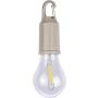 ABS anyagból készült izzó formájú lámpa (60 lumen) 400 mAh kapacitású, újratölthető akkumulátorral. USB-C csatlakozással tölthető. Fém klippel rendelkezik és három világítási móddal. IPX3 védettségi szint.
