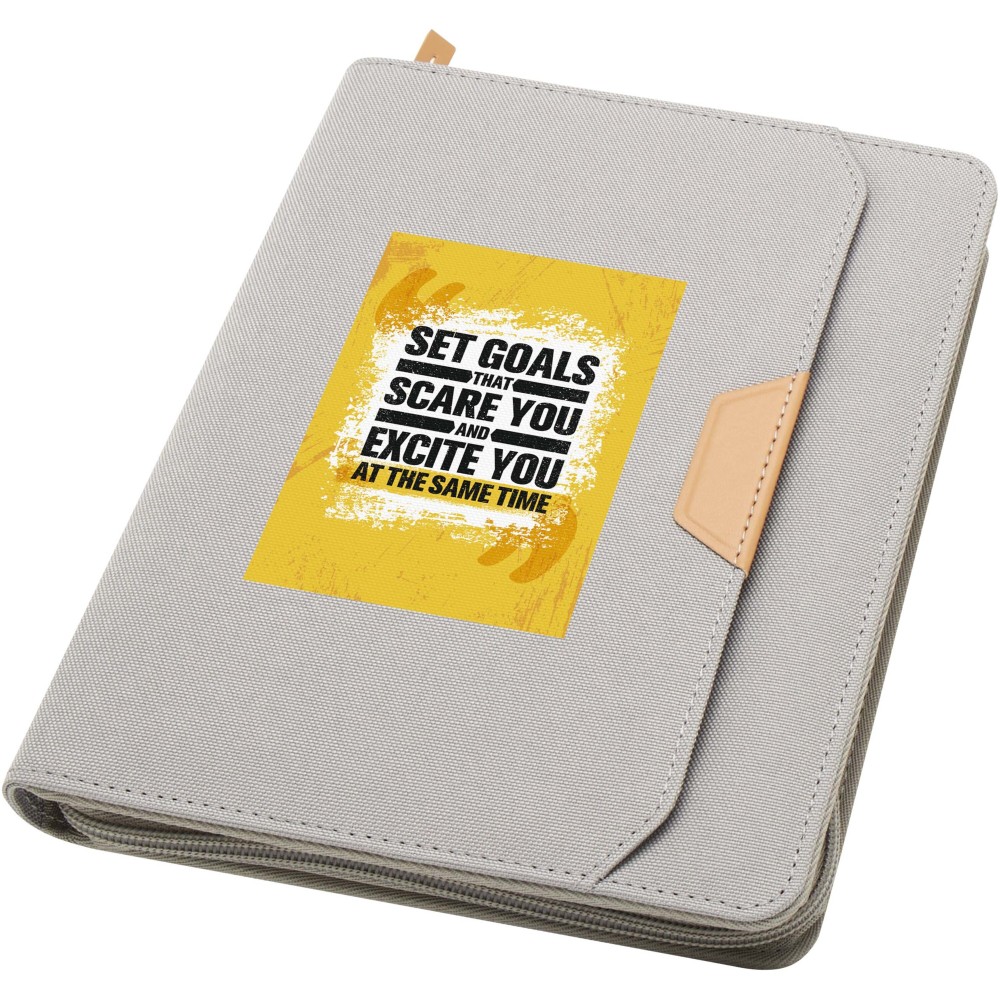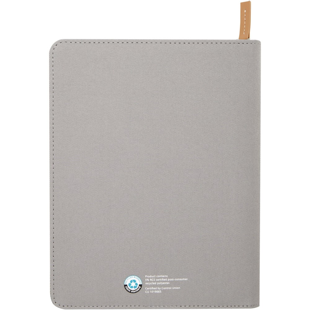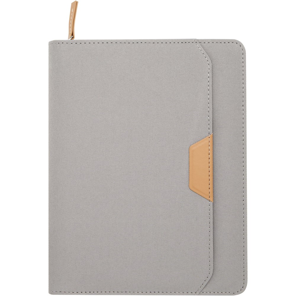 A Nomumi A5 portfólió lekerekített sarkú, újrahasznosított műanyagból készült, praktikus irodai alapdarab. 64 db krém színű, 80 g/m2 vonalas lapot tartalmaz, cipzáros záródással, tollhurokkal és egy zsebbel rendelkezik.
