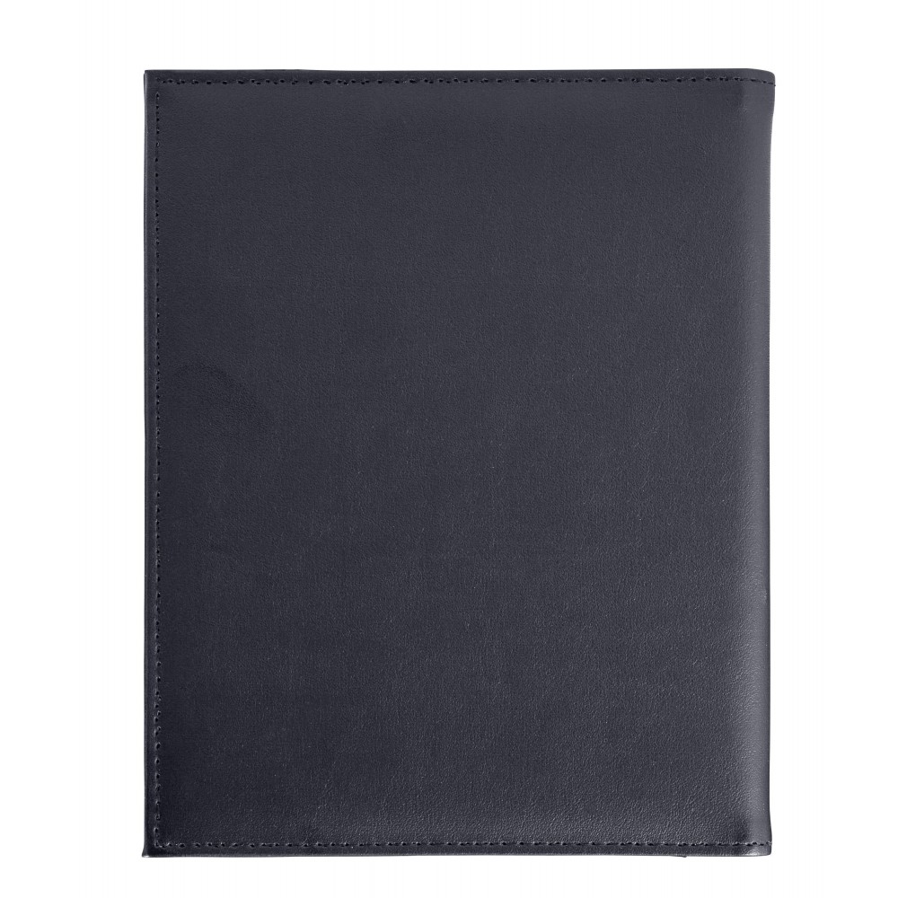 A5-ös PU mappa fém sarokkal. Jegyzettömböt nem tartalmaz. 30 vagy 50 lapos jegyzettömb fehér lapokkal a 23023 vagy 23026 cikkszámon külön rendelhető. A fekete mappa arany színű sarkokkal, a kék mappa ezüst színű sarkokkal érkezik.
