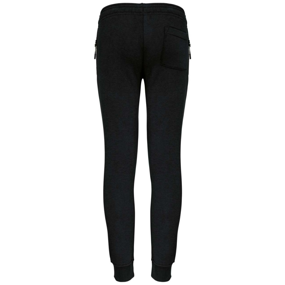65% poliészter / 35% pamut. 280 g/m2 polár. Rugkörtes derékpánt hozzá illő húzózsinórral. Az extra kényelem érdekében a derék belső oldalán kontrasztos. lágy rugkörtes szalag található. fluoreszkáló végzárással. 2 cipzárazható mesh oldalzseb. 1 foltzseb hátul. 2x2 bordázott lábkivágás.