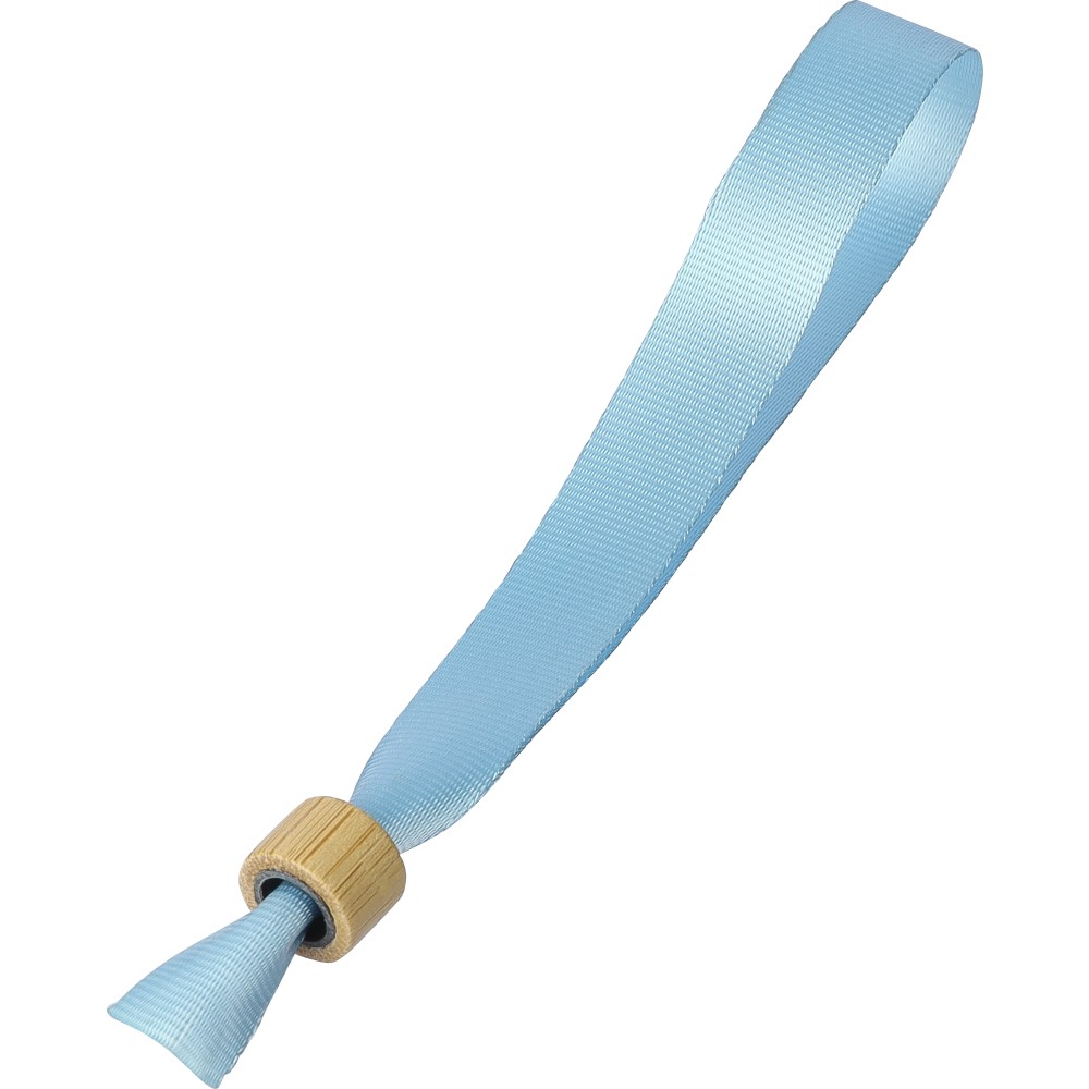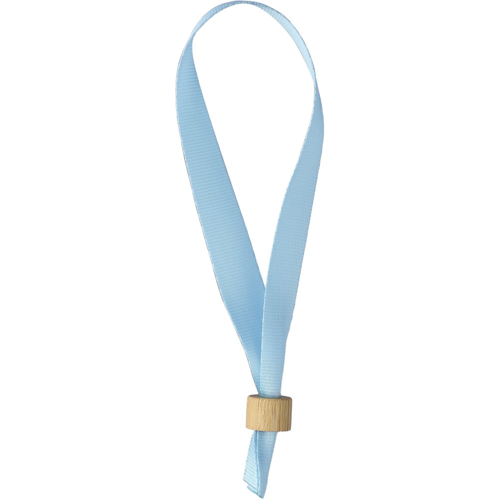 300D rPET karszalag bambusz hengerzárral. Hosszúság: 34 cm, szélesség: 1.5 cm.