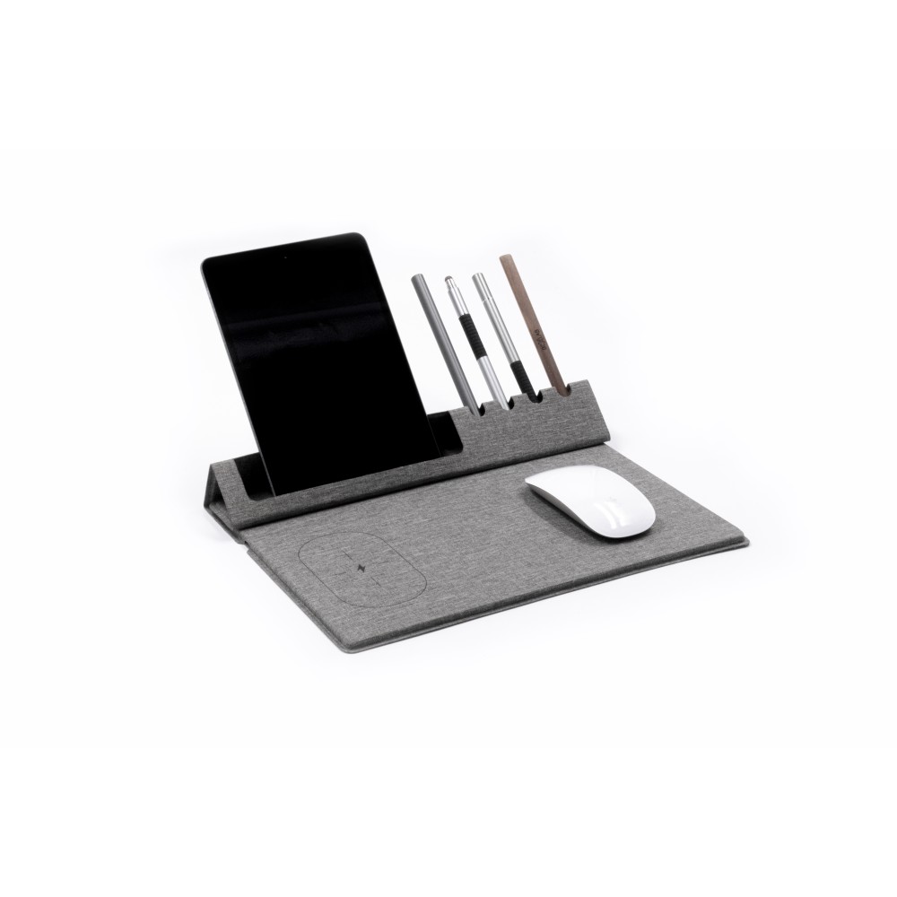 Alakítsa át munkaterületét az Evopad segítségével! Ez az újrahasznosított PET-palackokból készült többfunkciós eszköz vezeték nélküli töltőt, egérpadot, telefontartót és tolltartót kombinál egyetlen kompakt kialakításban. Akár az irodában, akár otthon, akár egy kávézóban tartózkodik, az Evopad rendszerezetten, rendezetten és teljesen feltöltve tartja a munkahelyét, bárhová is megy.