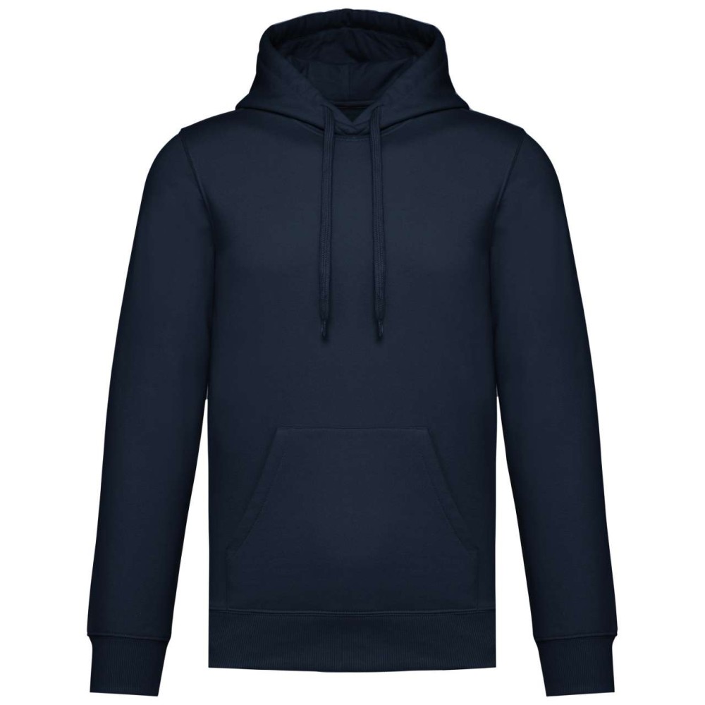 50% gyűrűs fonású pamut / 50% újrahasznosított poliészter, fésült pamut. Egyenes szabású, vágott és varrott. 1x1 bordás kötés a nyakkivágás, a mandzsetta és az alsó szegély jobb megjelenése érdekében. Kenguruzseb. Policotton dzsörzé bélésű kapucni lapos húzózsinórral. Színben illeszkedő dzsörzé szalagos belső a nyakkivágásnál. Csak méretcímke márkajelzés nélkül.