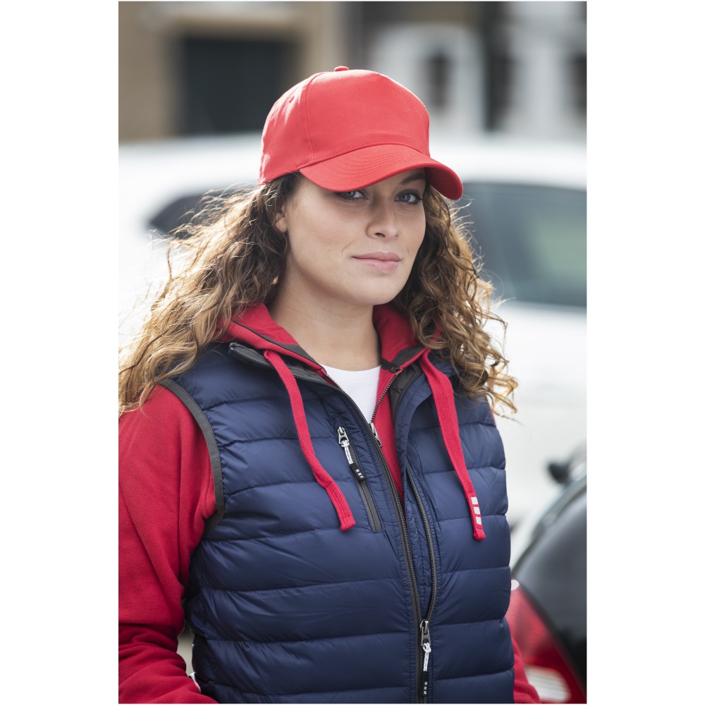 5 paneles baseballsapka ívelt simléderrel, hímzett szellőzőkkel, fém csattal. 100% twill pamut, 260 g/m2.