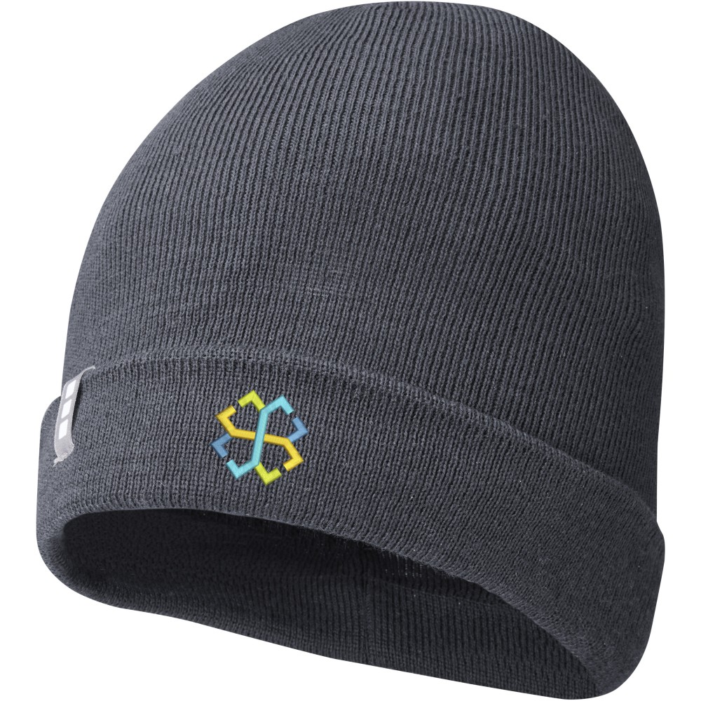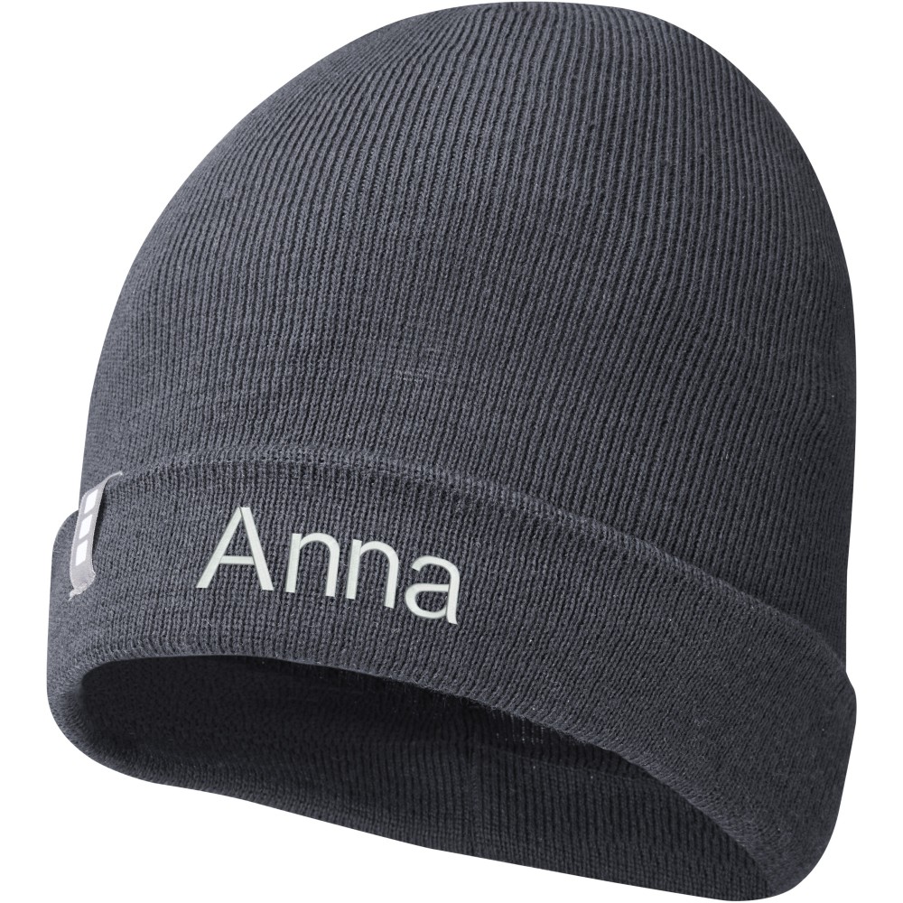 Egyrétegű sapka visszahajtókával, bevarrt márkajelzéssel. A Polylana szál öko alternatívát képez a 100% akril és a gyapjú alapanyagokhoz képest, mert csökkentett víz- és energia-felhasználással készül így csökkentve a CO2-kibocsátást.
