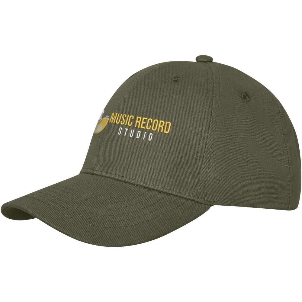 6 paneles baseballsapka ívelt simléderrel, hímzett szellőzőkkel, fém csattal. 100% twill pamut, 260 g/m2.