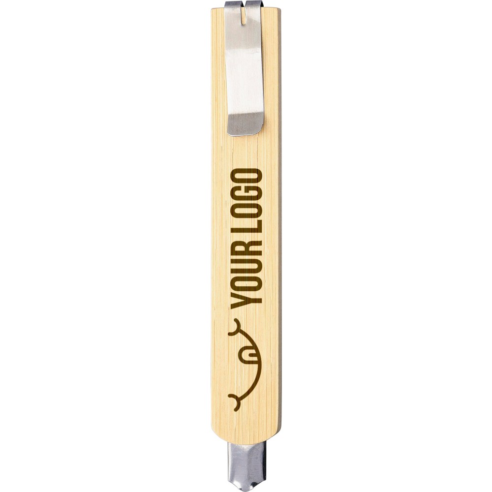 Sniccer bambusz testtel. A hátoldalán fém klip található, amellyel a vágóél rögzíthető, amikor nincs használatban. A pengék szénacélból készültek. Egyenként újrahasznosított műanyag tasakba csomagolva. Anyaga: fém és bambusz.