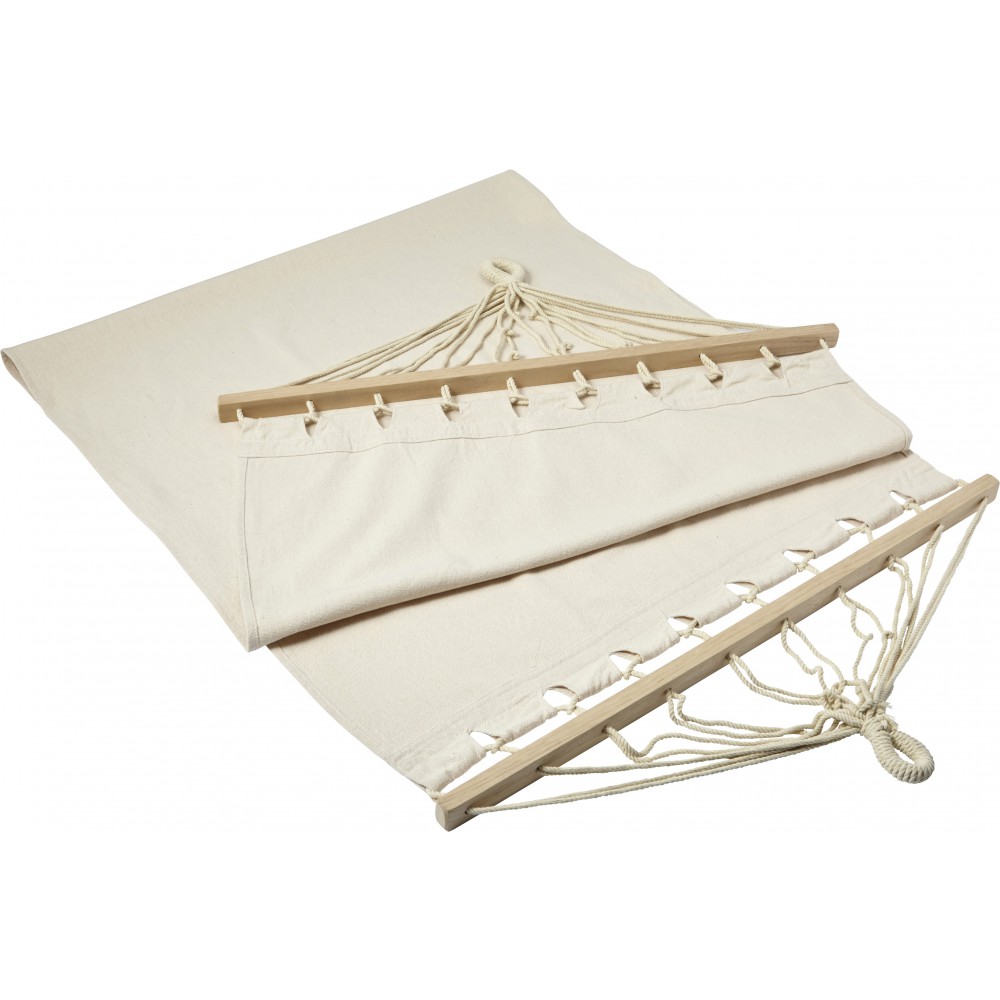 Függőágy fa vázzal, táskában. Teherbírás: 150 kg. Poliészter vászon.