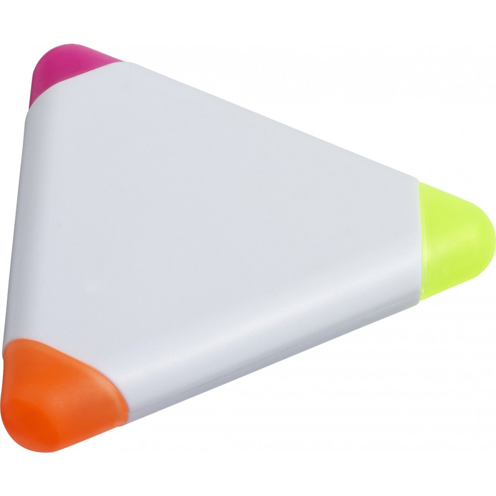 Háromszög alakú szövegkiemelő három színnel: rózsaszín, narancssárga és sárga. ABS, PP műanyag.