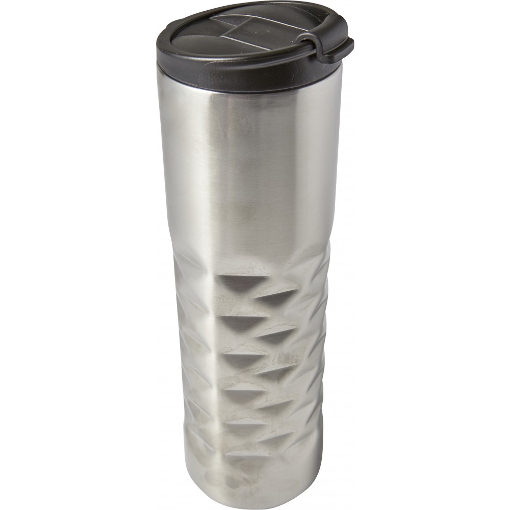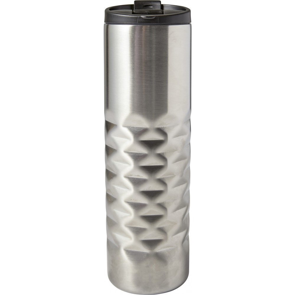 Duplafalú termoszbögre gyémánt mintázattal. Nem szivárgásmentes. Mosogatógépben nem tisztítható. 460 ml. Rozsdamentes acél és BPA-mentes műanyag.