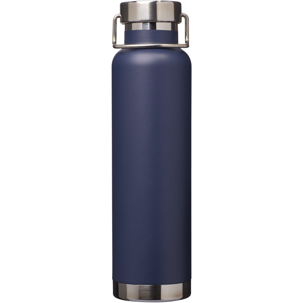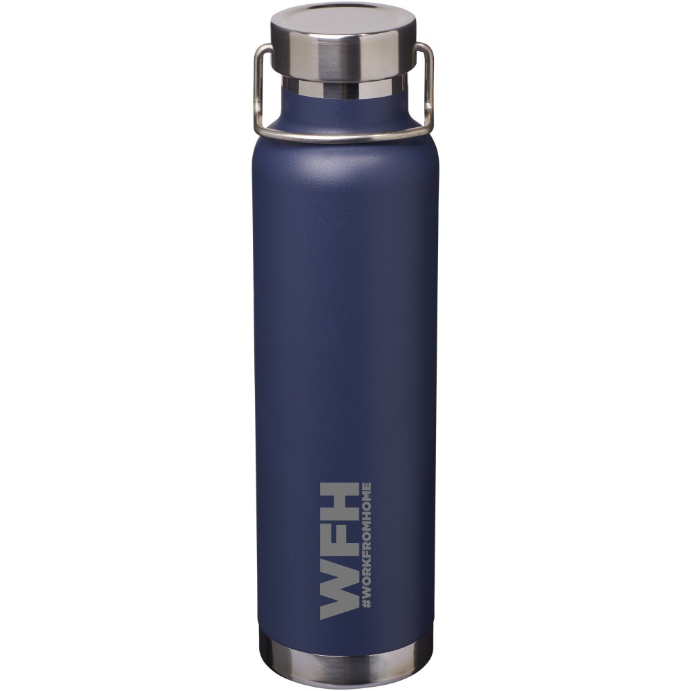 Thor duplafalú vákumos palack. Belső fala réz, ennek köszönhetően 48 órás hideg- és 12 órás melegtartási képességgel rendelkezik. Ez a kialakítás megakadályozza a kondenzációt a palack külső falán. A termoszhoz csavaros, rozsdamentes acél kupak tartozik. Széles kiöntő nyílással rendelkezik, amely akár jégkockák behelyezésére is alkalmas. Szivárgásmentes. Szénsavas italokkal nem használható. Mosogatógépben nem mosható és mikrohullámú sütőben történő melegítésre nem alkalmas. Űrtartalom: 650 ml. Csomagolása Avenue díszdoboz. Rozsdamentes acél.
