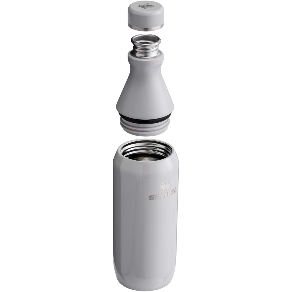 A Stanley 350 ml-es All Day Slim vizespalackot a napi hidratálásra tervezték, ötvözve a kényelmet és a teljesítményt. 90%-ban újrahasznosított rozsdamentes acélból készült, két részből álló nyílással rendelkezik: az egyik a könnyű iváshoz, a másik a jég hozzáadásához és a problémamentes tisztításhoz. A nyak egyfalú rozsdamentes acélból készült, műanyagmenetes gallérral és tömítéssel, amely megakadályozza a szivárgást. A test duplafalú vákuumszigeteléssel rendelkezik, biztosítva, hogy az italok órákon át a tökéletes hőmérsékleten maradjanak. Tartós és gondosan megtervezett, ideális palack a felfrissüléshez.