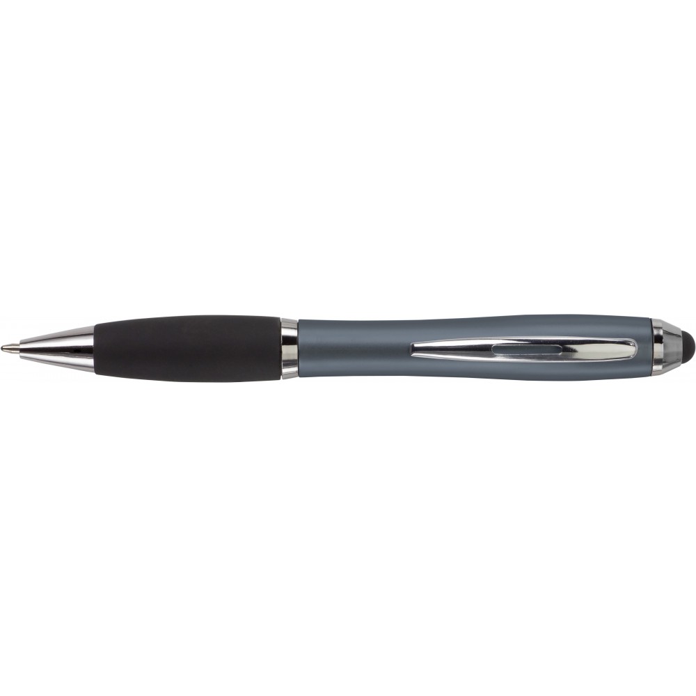 Érintős golyóstoll fekete tollbetéttel. A tetején lévő gumi segítségével érintőképernyős eszközökön használható.