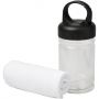 Hűtőtörölköző PET tartóban. A törököző mérete: 30 x 80 cm. 100% poliészter.