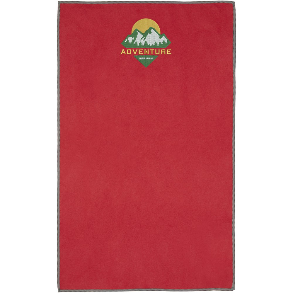 A Pieter sporttörülköző nagyon jó nedvszívó, könnyű, gyorsan szárad, az anyaga pedig tartós és rendkívül puha. Ha a törölközőt összehajtjuk és gumiszalaggal rögzítjük, kis méretűre csomagolható, így alkalmas arra, hogy magunkkal vigyük az edzőterembe, uszodába, vagy ha hátizsákos túrára, esetleg kempingezésre megyünk. A törülköző 30 x 50 cm méretű, 90% GRS újrahasznosított poliészterből és 10% nejlonból készült, és 40 °C-on mosható mosógépben. Újrahasznosított PET műanyagból készült tároló tasakkal (15.5 x 10 cm) szállítjuk.
