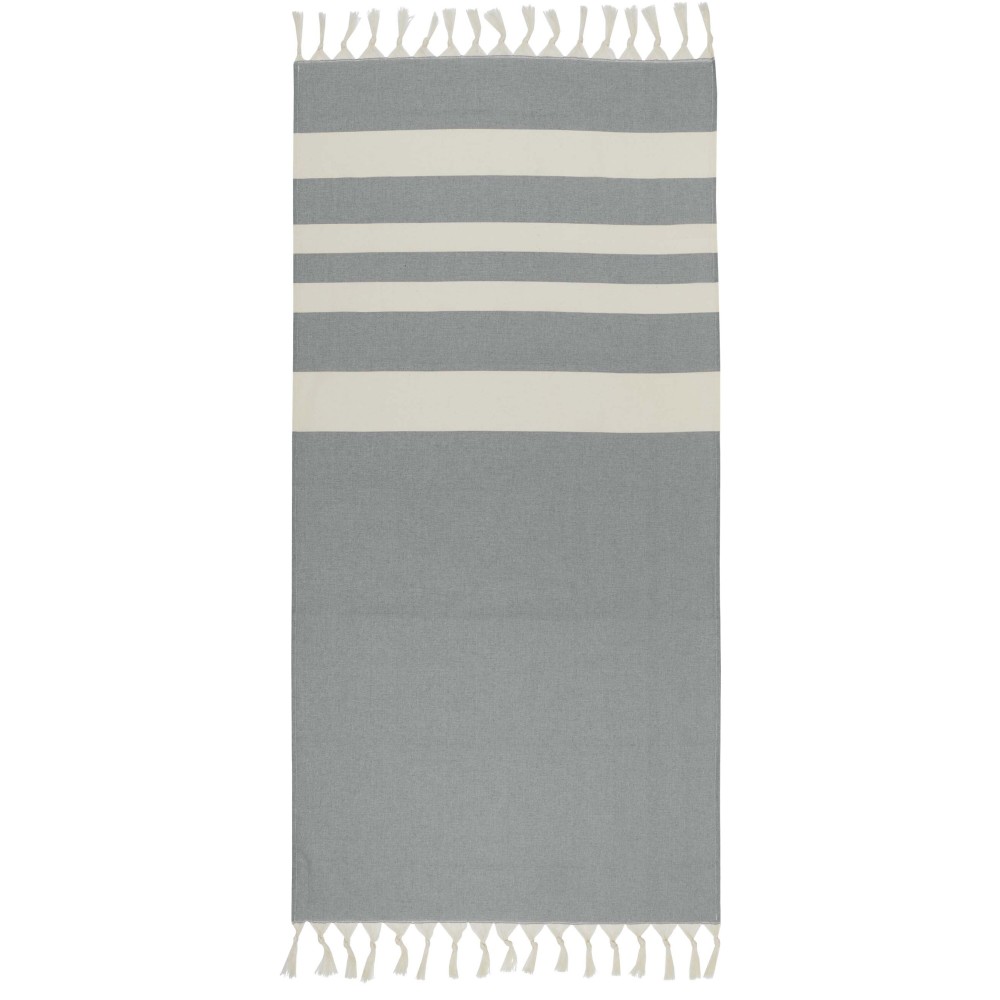 Az Anders hammam törölköző luxus kényelmet nyújt nagy méreteivel (147 x 75,5 cm), biztosítva a megfelelő takarást, akár a medence mellett pihensz, akár a tengerparton töltöd a napot. A törölköző mindkét végén elegáns bojtokkal van díszítve, anyaga 30% pamut, 35% GRS tanúsítvánnyal rendelkező újrahasznosított pamut és 35% GRS tanúsítvánnyal rendelkező újrahasznosított poliészter. 180 g/m2.