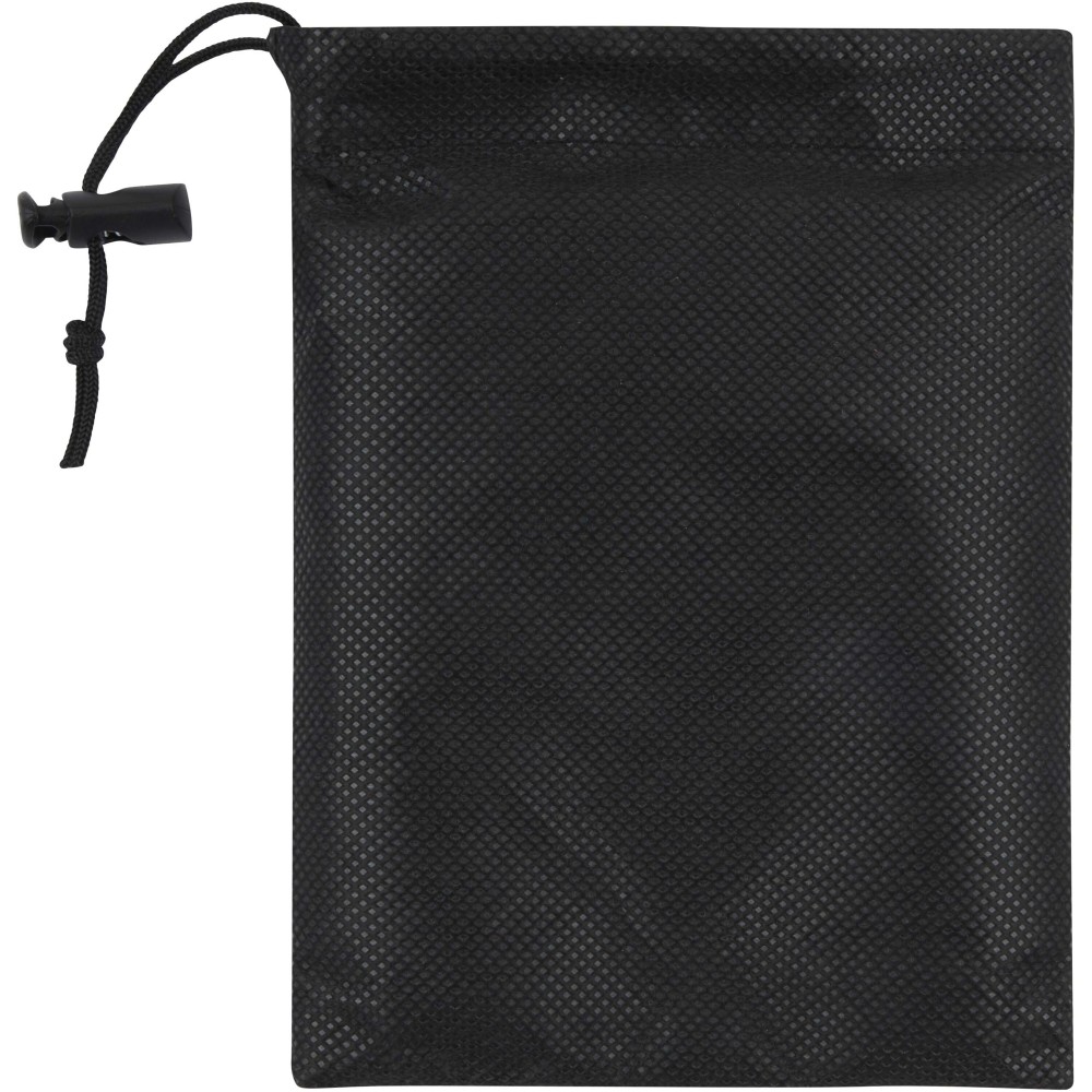 A Lucas RPET sporttörölköző 100%-ban újrahasznosított poliészterből készült, puha és nedvszívó felületet biztosít, így ideális edzéshez vagy szabadtéri tevékenységekhez. 140 g/m2 súlyával a tartósságot és a könnyed kényelmet ötvözi. A törölköző praktikus műanyag pánttal van ellátva, amellyel mind a törölközőt, mind a tasakot biztonságosan rögzítheted, megkönnyítve a hordozást és tárolást. A csomag egy tasakkal (13 x 18 cm) is rendelkezik, amely szintén 100%-ban újrahasznosított poliészterből készült. A törölköző mérete: 50 x 100 cm.
