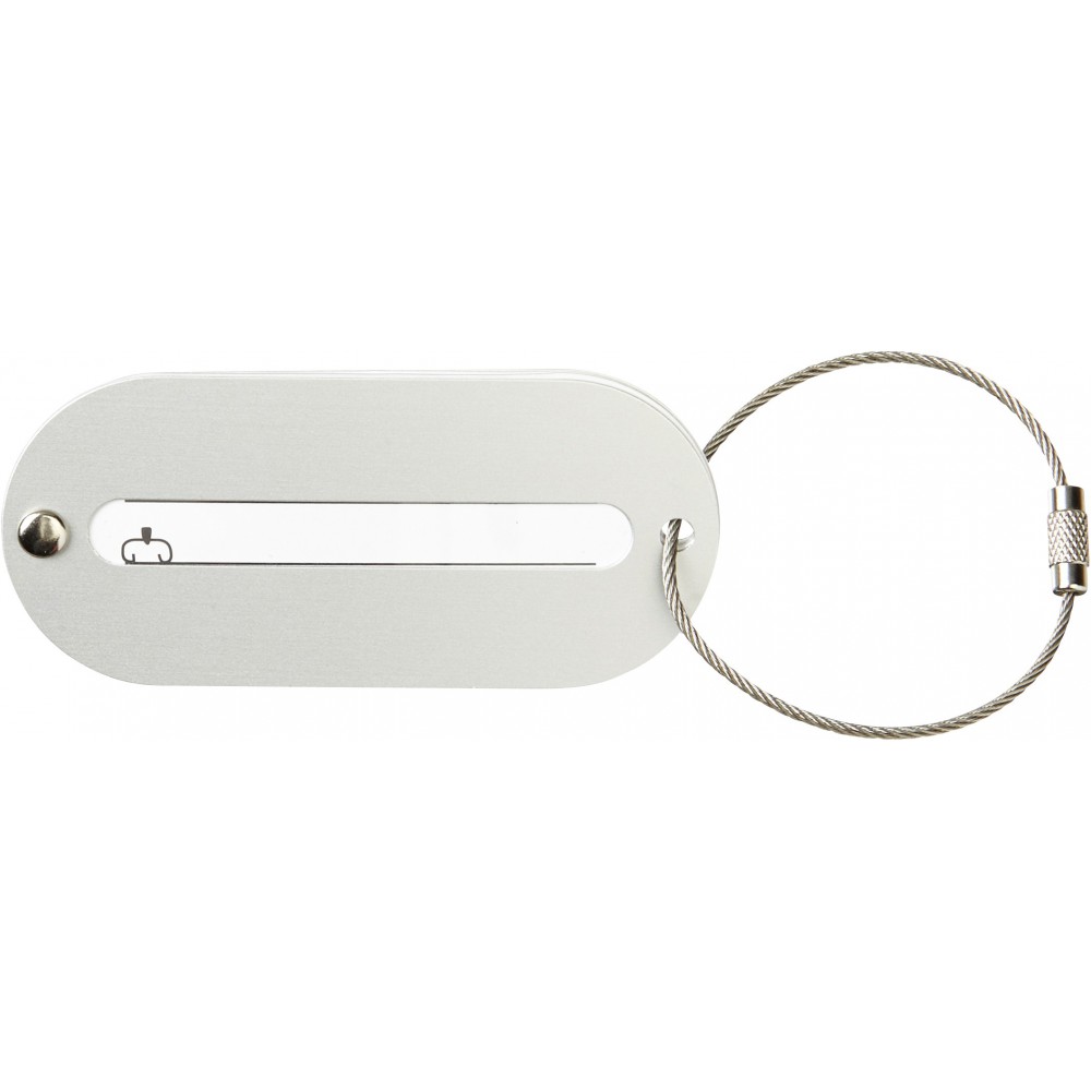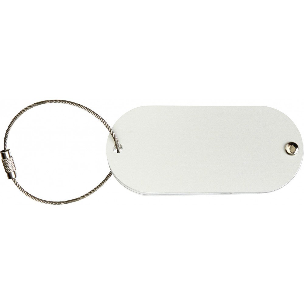 Poggyászazonosító alumínium tábla, fém sodort huzalon.