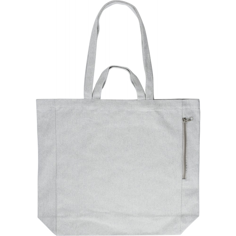 Újrahasznosított pamut bevásárlótáska rövid és hosszú füllel. Oldalt cipzáras zseb. 350g/m2